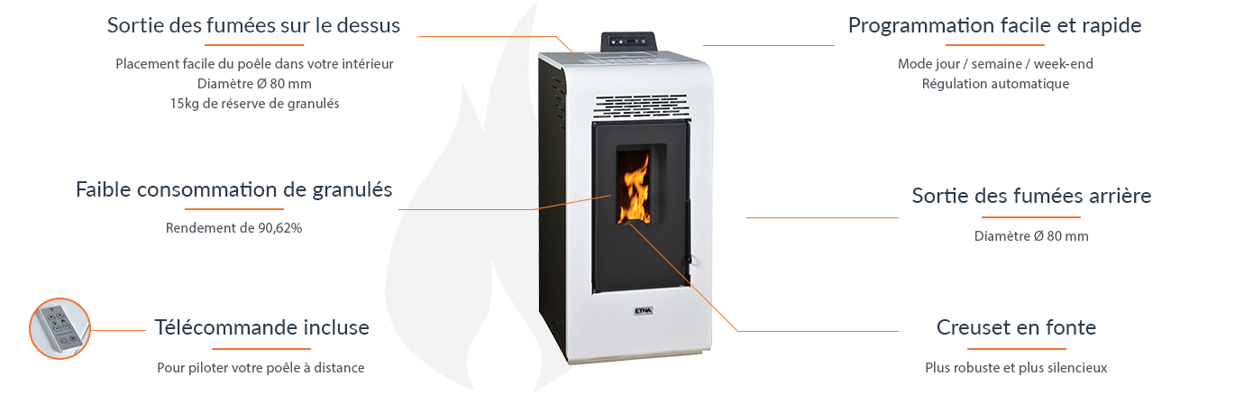 Ce poêle peut être piloté à distance grâce au Module Wifi ETNA Vulcano.